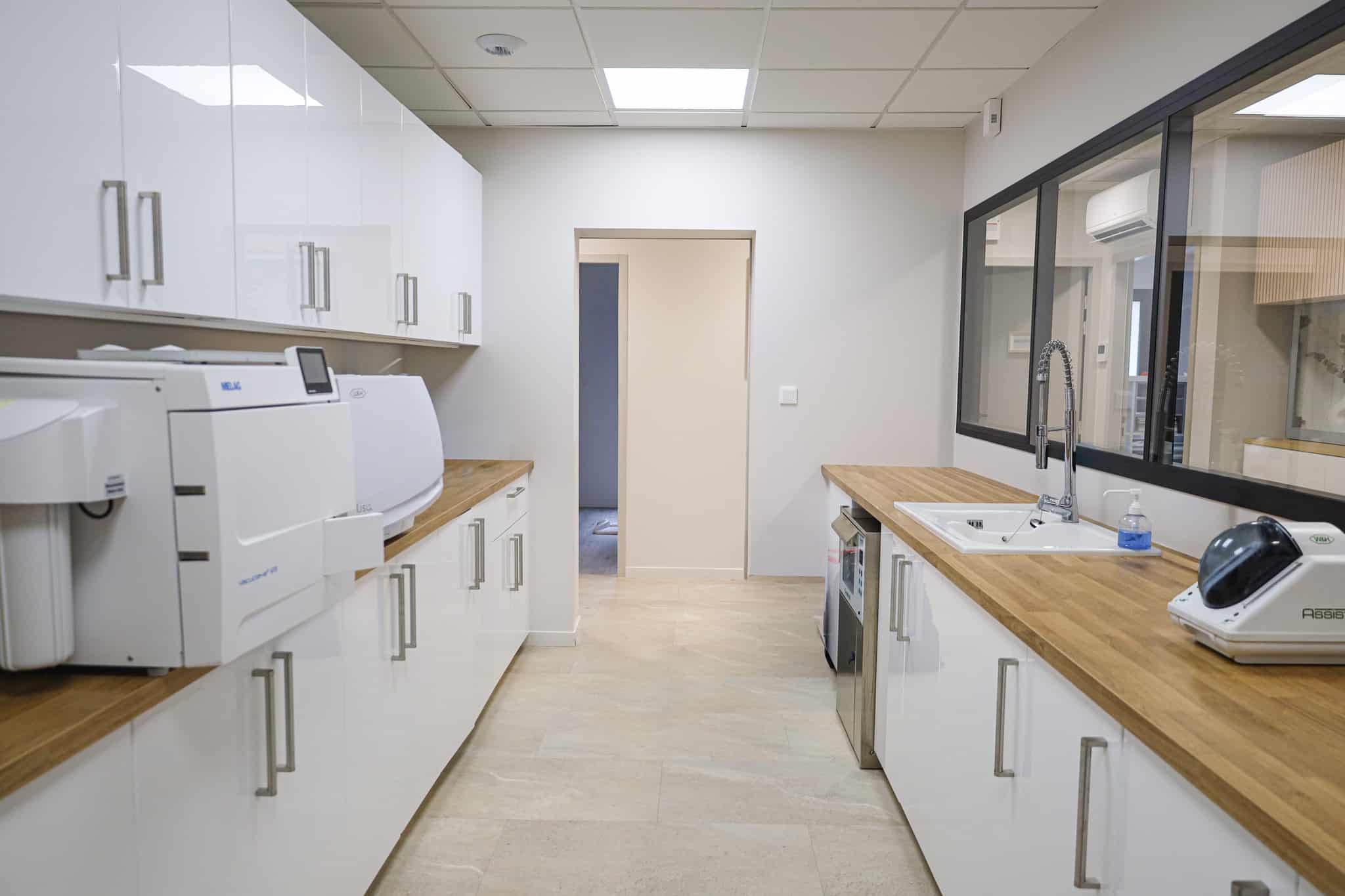 - L’équipement des salles de soins et d’hygiène (Fauteuils, Cône Beam, Autoclaves, Eclairages…)